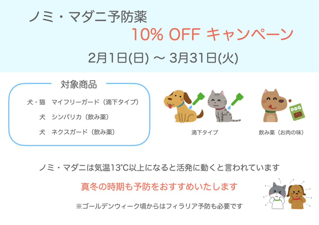 ※わんちゃんの血液検査キャンペーンは 4月以降のフィラリア検査と合わせて行います! もうしばらくお待ちくださいね!