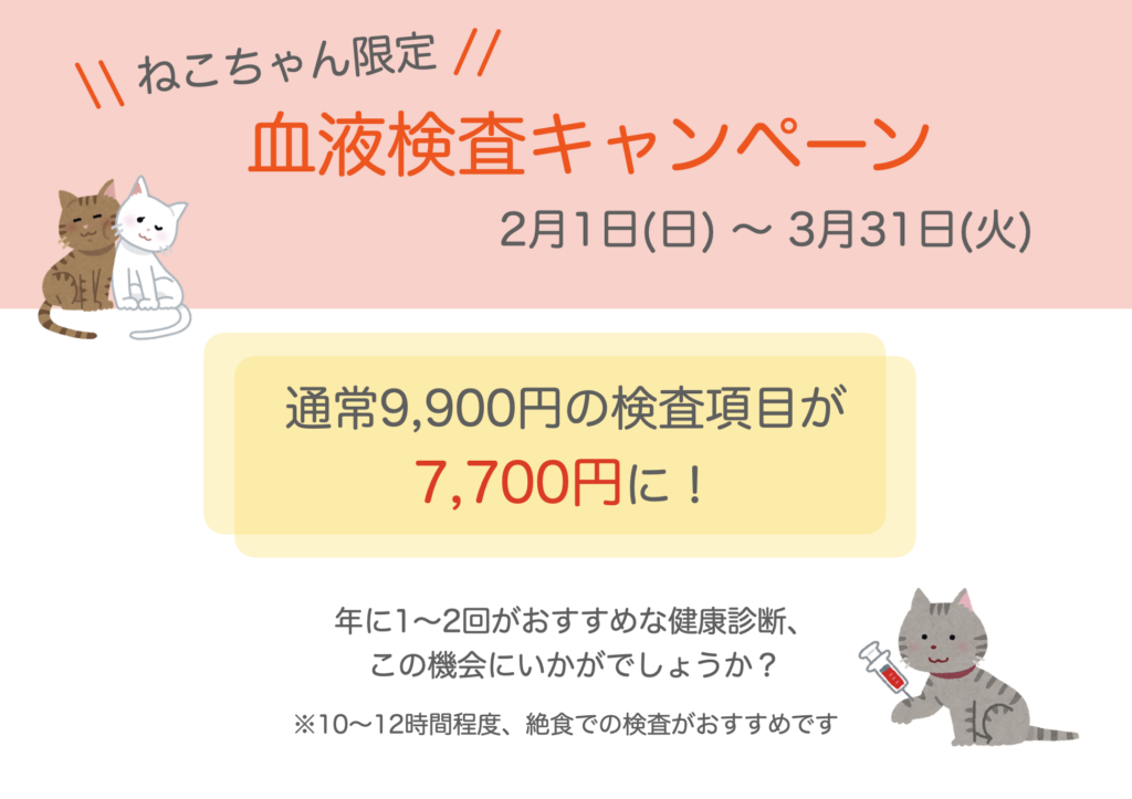 ②猫ちゃん限定!血液検査 2,200円OFF!